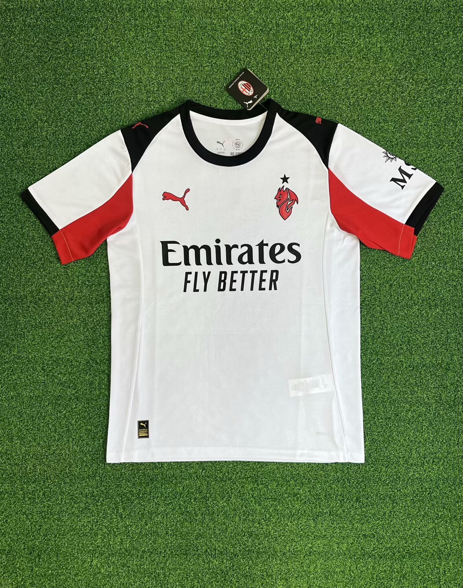 AC Milan Third Jersey 24/25 – crafted by Puma in a sleek white base with bold red and black details. Featuring the iconic club crest, Emirates Fly Better sponsor, and lightweight performance fabric for ultimate comfort on and off the pitch. A must-have for true Rossoneri fans.