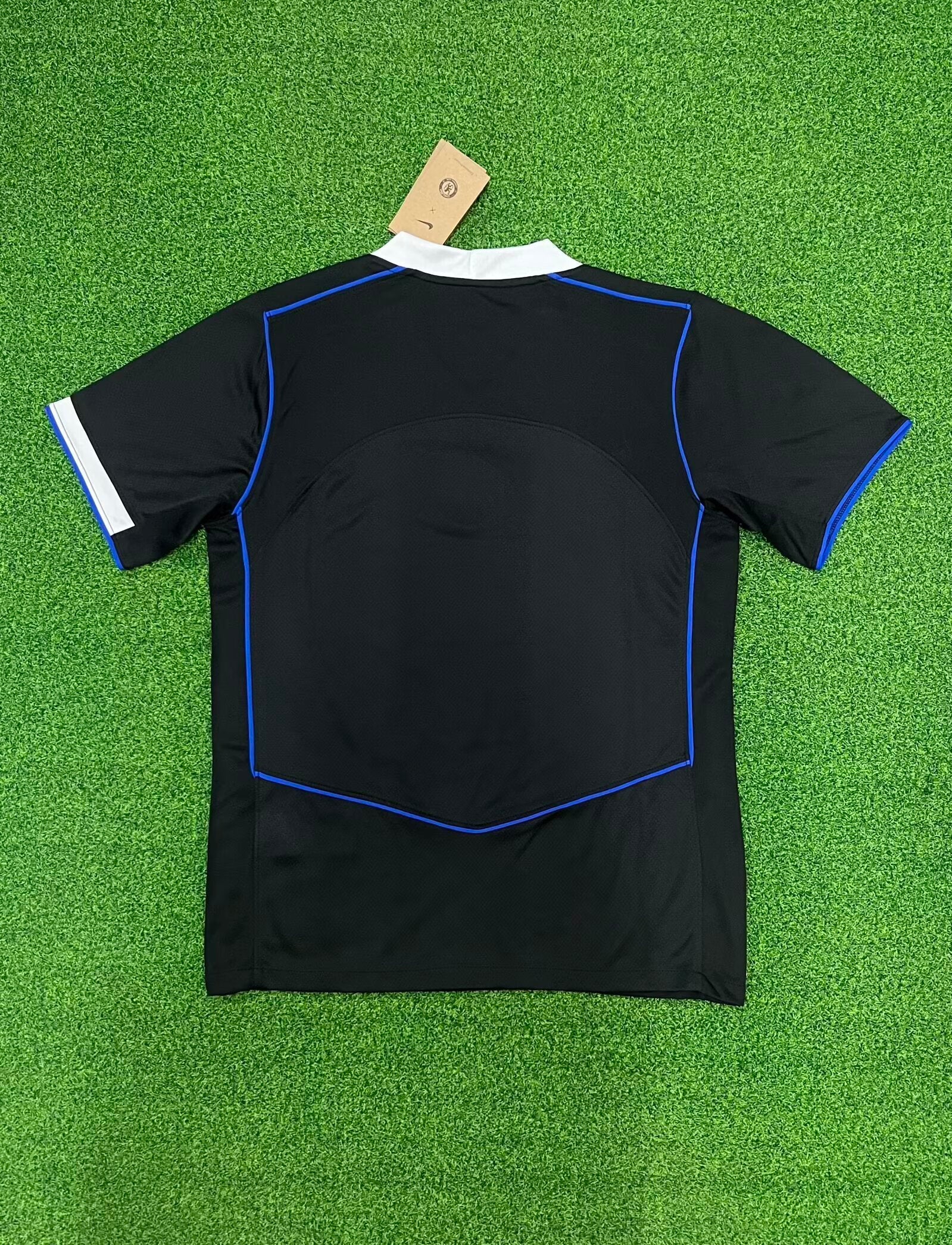 Chelsea T-90 Jersey-inspired look with a modern twist. Designed in black with electric blue piping and a crisp white collar, it features the retro CFC lion crest at the center. Nike’s Dri-FIT technology ensures comfort and breathability, making it perfect for fans who love vintage vibes with contemporary performance